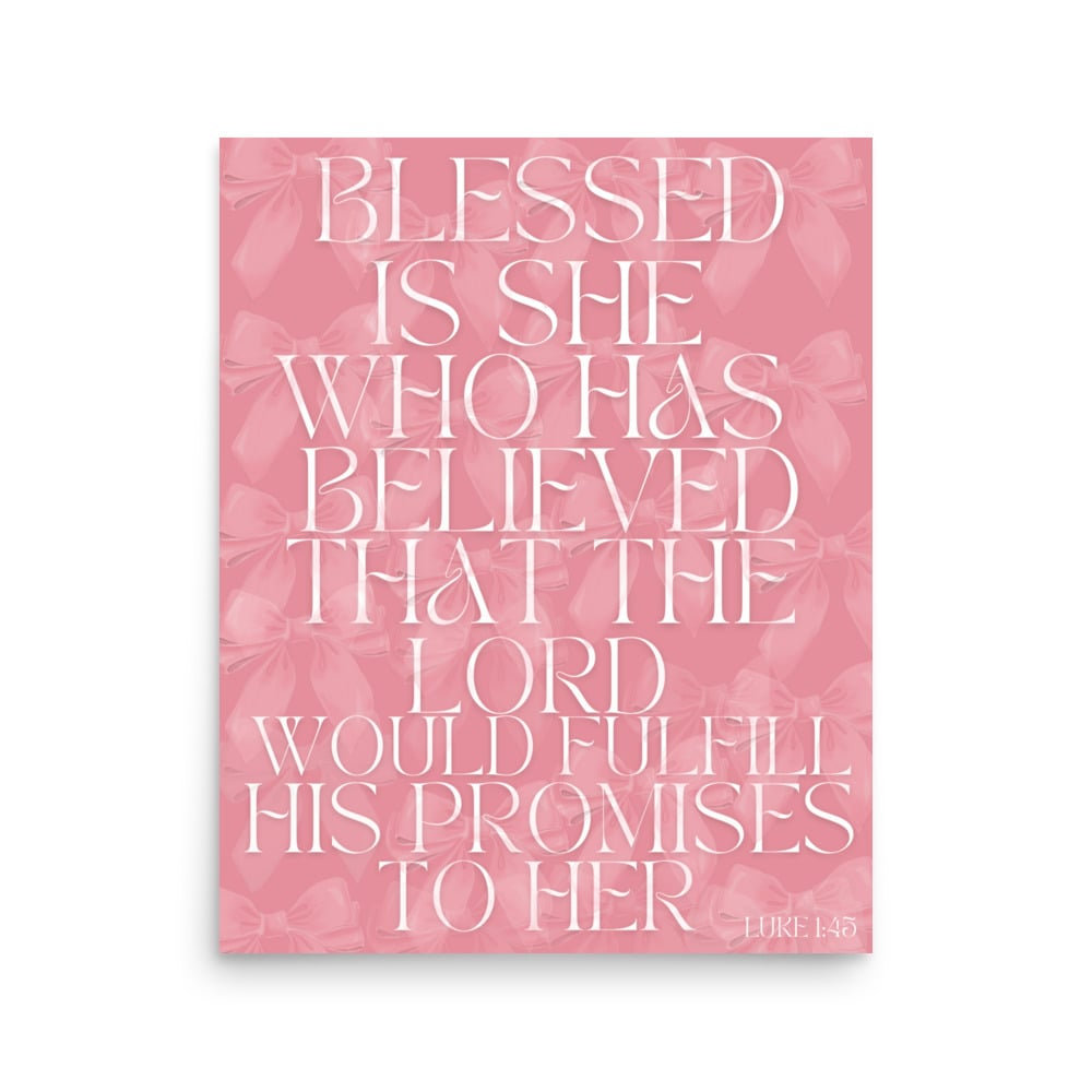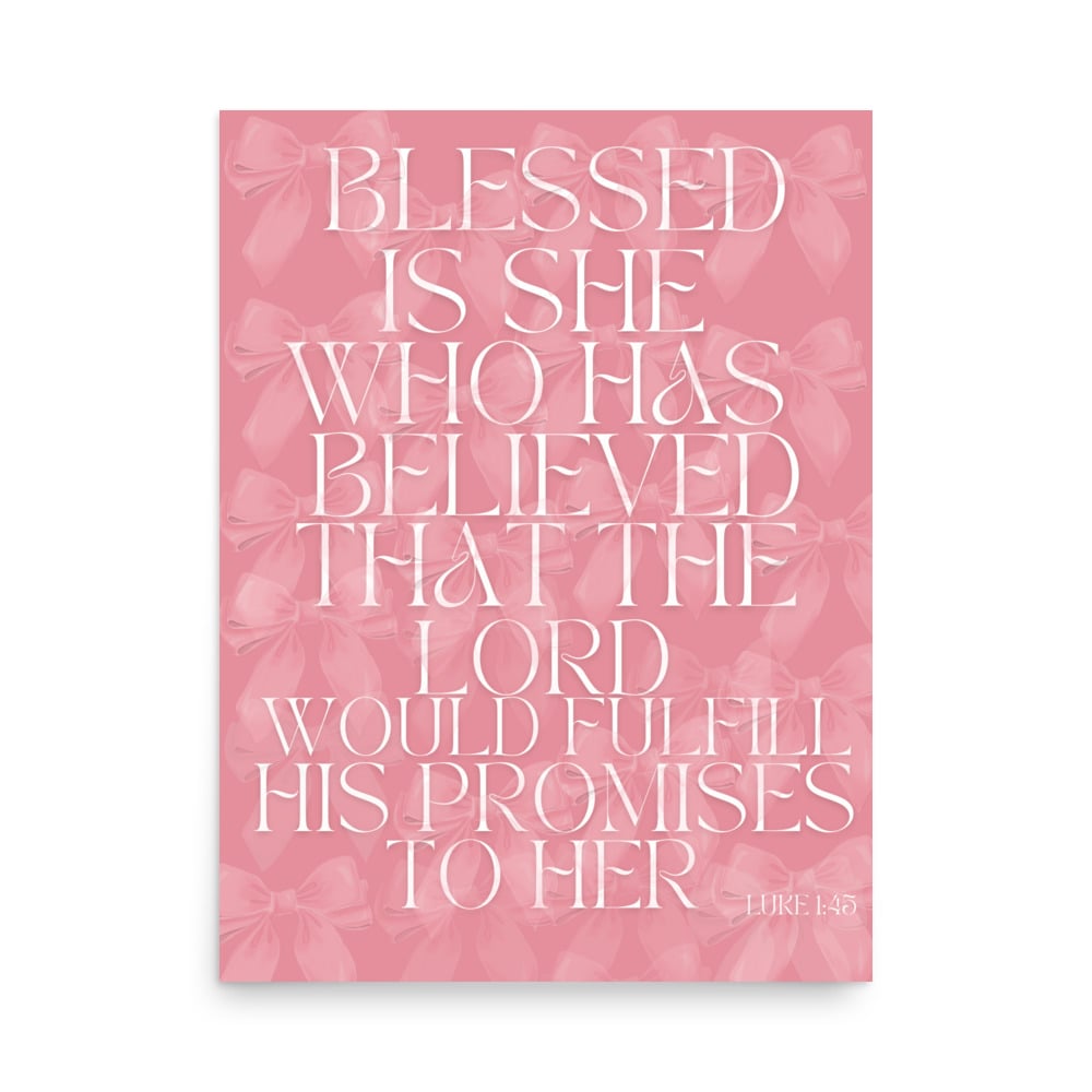 Add a touch of faith and elegance to your space with this beautiful Luke 1:45 pink poster with bows. Designed with soft pink tones and delicate bow accents, this piece is a gentle reminder to trust in God’s promises. Perfect for bedrooms, prayer spaces, or as a meaningful gift for someone special. 💗(no frame)
