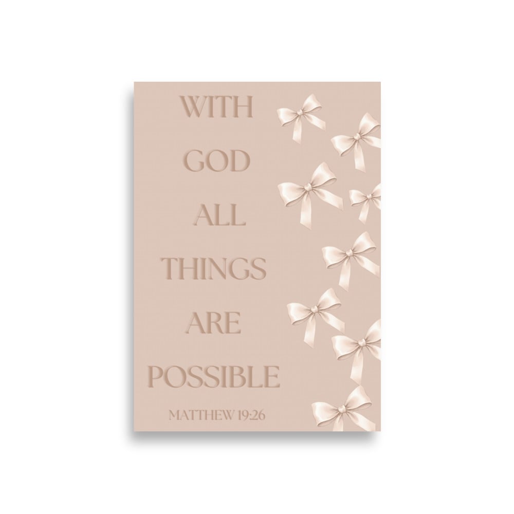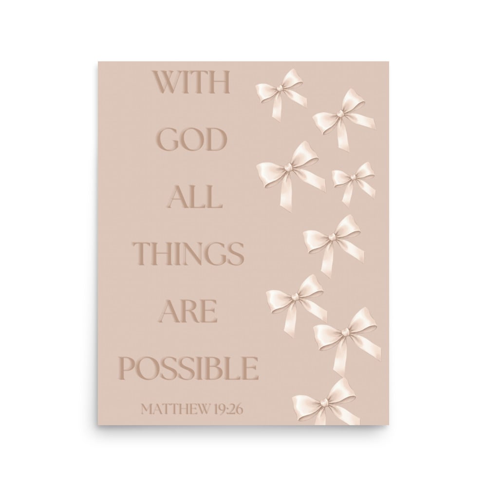 Matthew 19:26 With God All Things Are Possible🤎Brown With Bows Poster