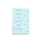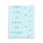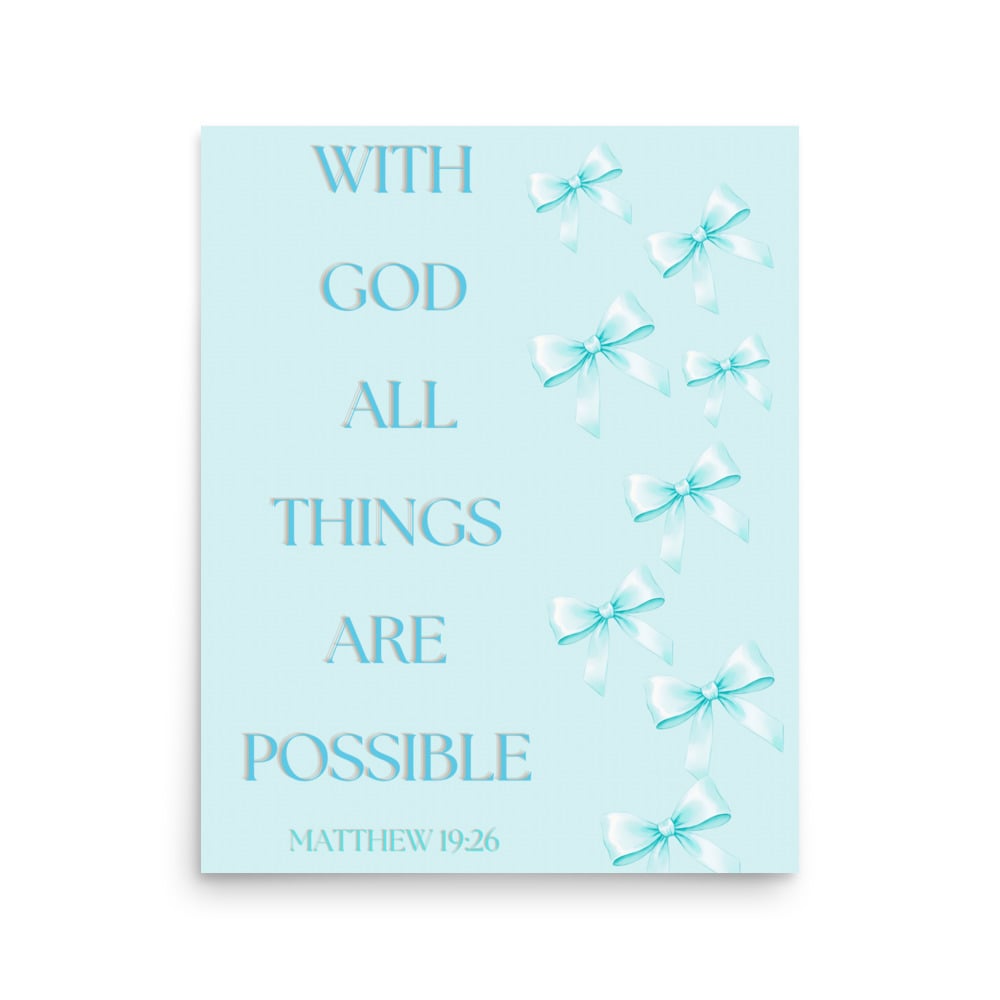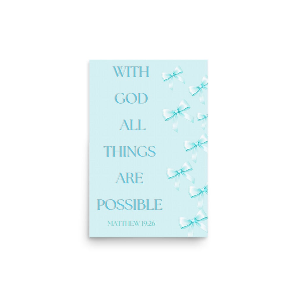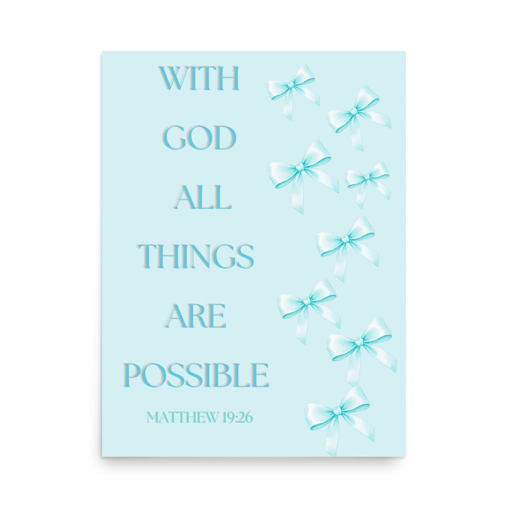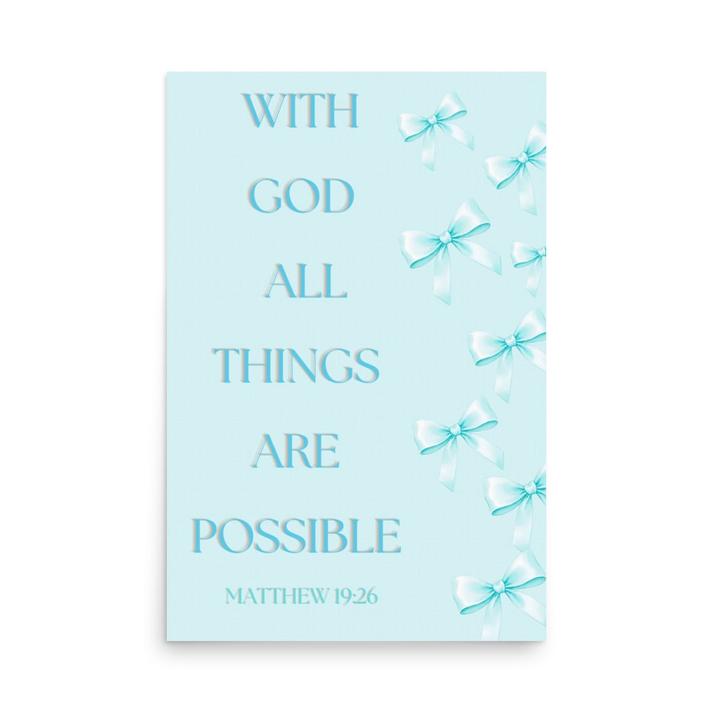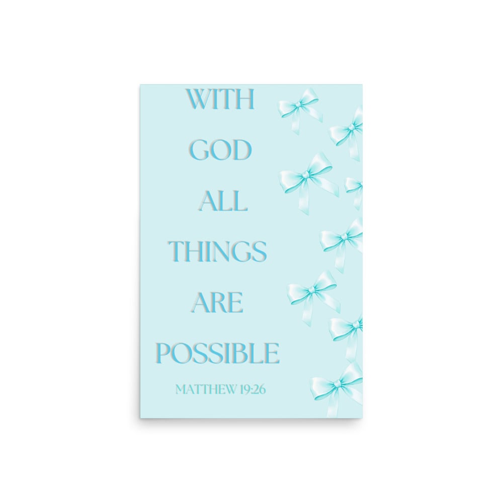Matthew 19:26 With God All Things Are Possible Blue with Bows Poster
