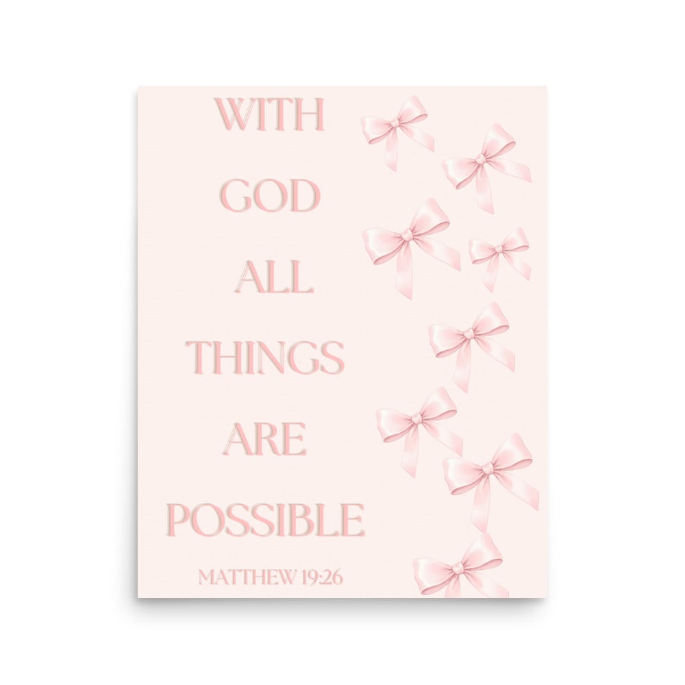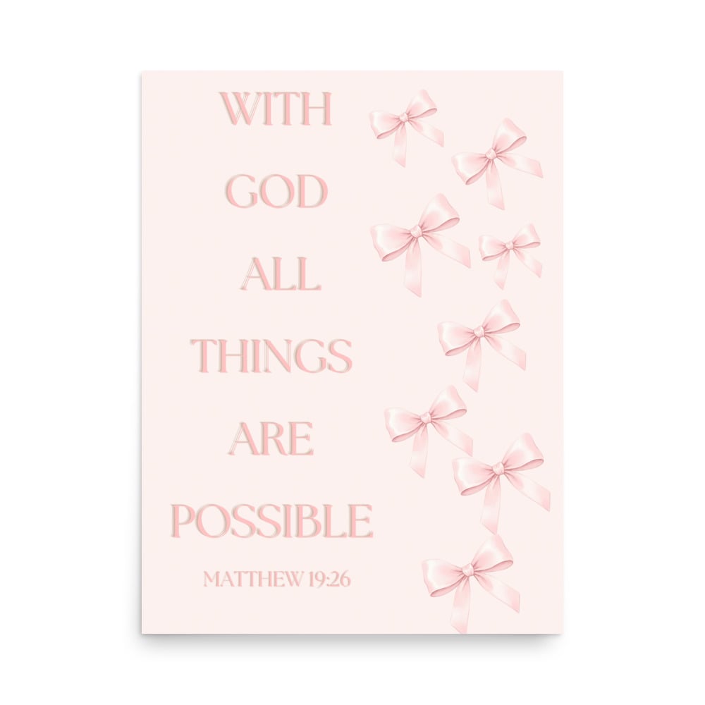 Matthew 19:26 With God All Things Are Possible Pink with Bows Poster