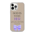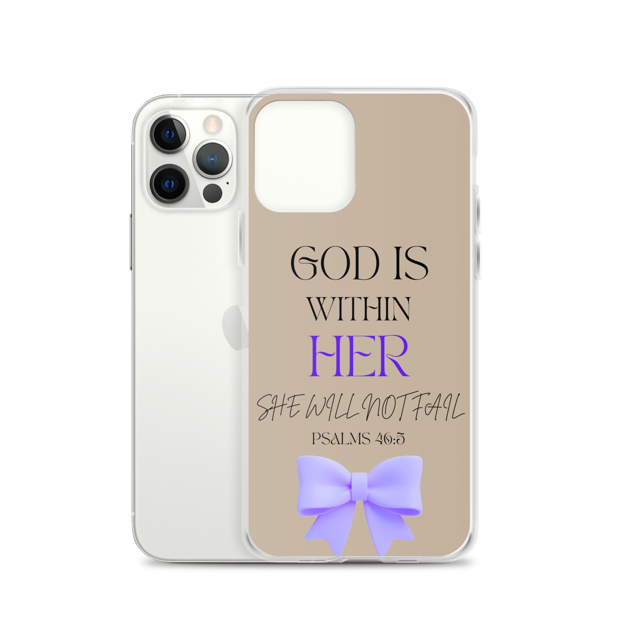 This brown and purple “God Is Within Her, She Will Not Fail” iPhone case is designed to uplift and encourage. A daily reminder that with God is within you and nothing can break your strength ✨